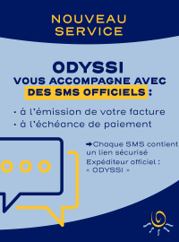 À partir d’octobre, ODYSSI met en place l’envoi de SMS officiels pour vous accompagner dans le règlement de vos factures :1 SMS...